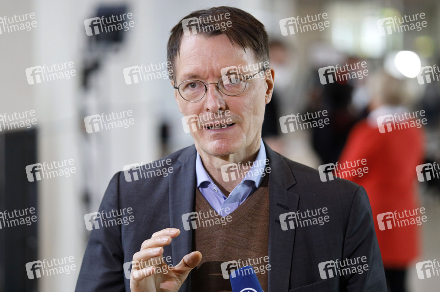 Karl Lauterbach beim Pressestatement nach der Befragung der Bundesregierung in der 217. Sitzung des Deutschen Bundestages im Reichstagsgebäude. Berlin, 24.03.2021
