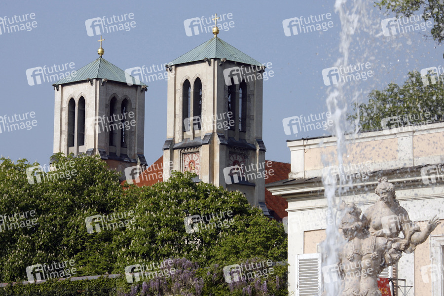 Kirche, Barockgarten, Statue am Springbrunnenbecken