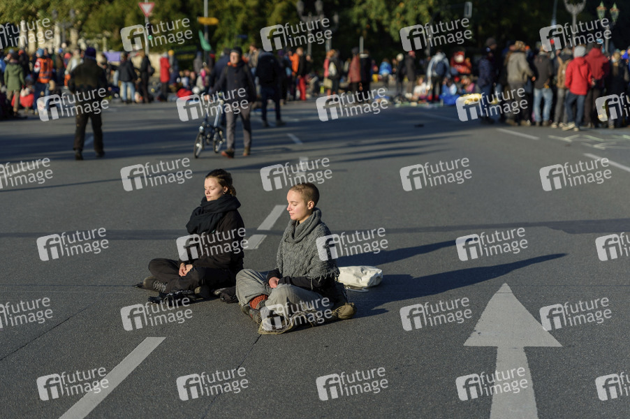 Aktivisten der Klimabewegung 'Extinction Rebellion' blockieren den Großen Stern an der Siegessäule. Berlin, 07.10.2019