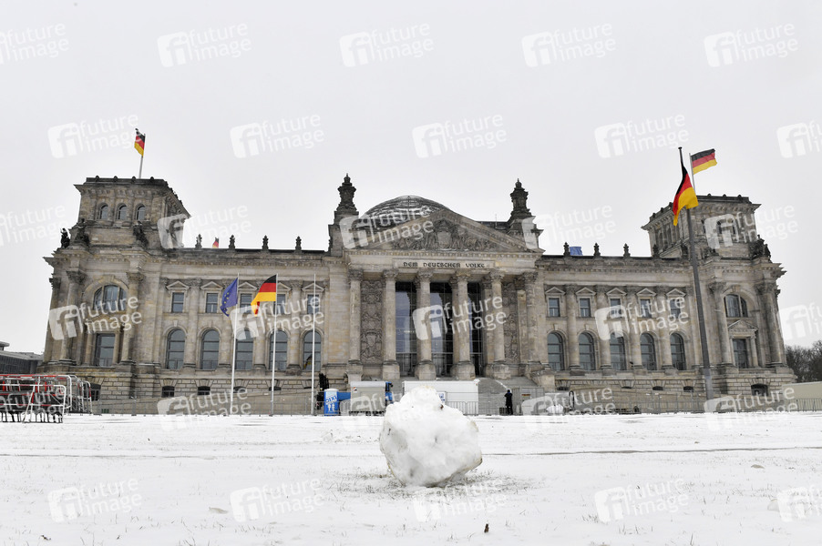 Schnee, Chaos, Glätte, Schneesturm, Eis, kalt, Wintereinbruch, Eisregen, Minustemperaturen, Winter, Grenzwetterlage, Schneefälle, Schneefall, Frost, Wetterlage, Reichstag, Platz der Republik