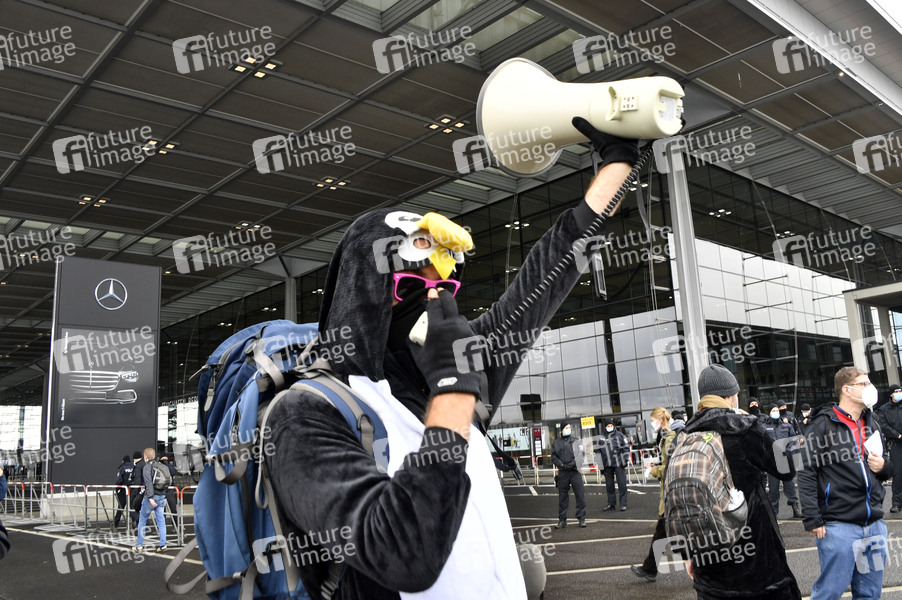 Protestaktionen des Bündnisses 'Am Boden bleiben' bei der Eröffnung des Flughafens Berlin-Brandenburg (BER). Schönefeld, 31.10.2020