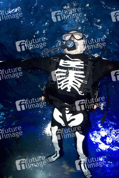 Unterhaltung, Entertainment, Taucher, Tauchen, Skelett, Fische, Sea Life Berlin, Halloween Aktion, Unterwasser, Tiere, Fische, Meeerestiere, Meeresbewohner