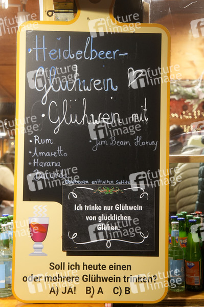 Glühwein-Schild auf dem City-Weihnachtsmarkt an der Gedächtniskirche auf dem Breitscheidplatz. Berlin, 16.12.2024