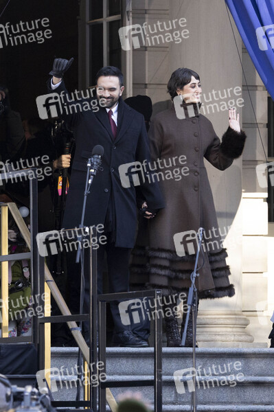 Zohran Mamdani mit Ehefrau Rama Duwaji bei der Amtseinführung des ersten muslimischen Bürgermeisters von New York City in Rathaus. New York, 01.01.2026