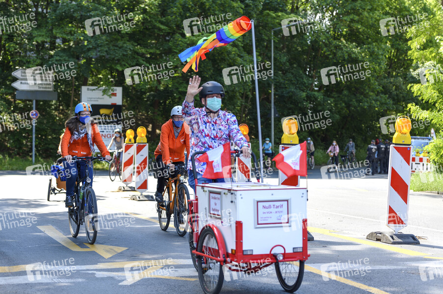 Aktion zum Bürgerbegehren 'Radentscheid Nürnberg 2020: für ein sicheres Miteinander' auf dem Volksfestplatz. Nürnberg, 21.05.2020