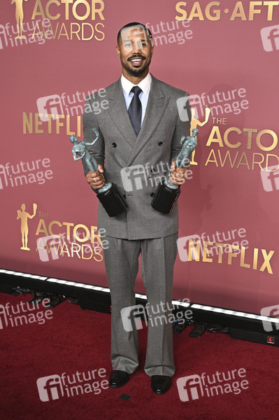 Michael B. Jordan mit dem Preis für den besten Filmdarsteller in 'Blood & Sinners' beim Photocall der Preisträger der 32. Verleihung der Actor Awards 2026 im Shrine Auditorium. Los Angeles, 01.03.2026