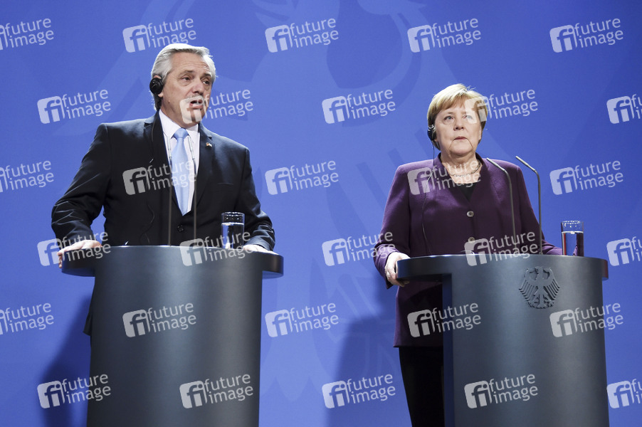 Alberto Angel Fernandez und Angela Merkel beim Pressestatement zum Antrittsbesuch des Präsidenten von Argentinien im Bundeskanzleramt. Berlin, 03.02.2020