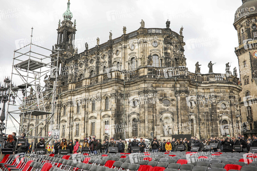 1000 leere Stühle bei der Demonstration 'Ohne uns ist Stille' der Organisation 'Leere Stühle' auf dem Theaterplatz in der historischen Dresdner Altstadt. Künstler, Veranstalter und Unternehmen der Veranstaltungsbranche wie Caterer und Techniker demonstrieren gemeinsem, um auf die Probleme und Wichtigkeit ihrer Branche aufmerksam zu machen. Dredsen, 05.06.2020