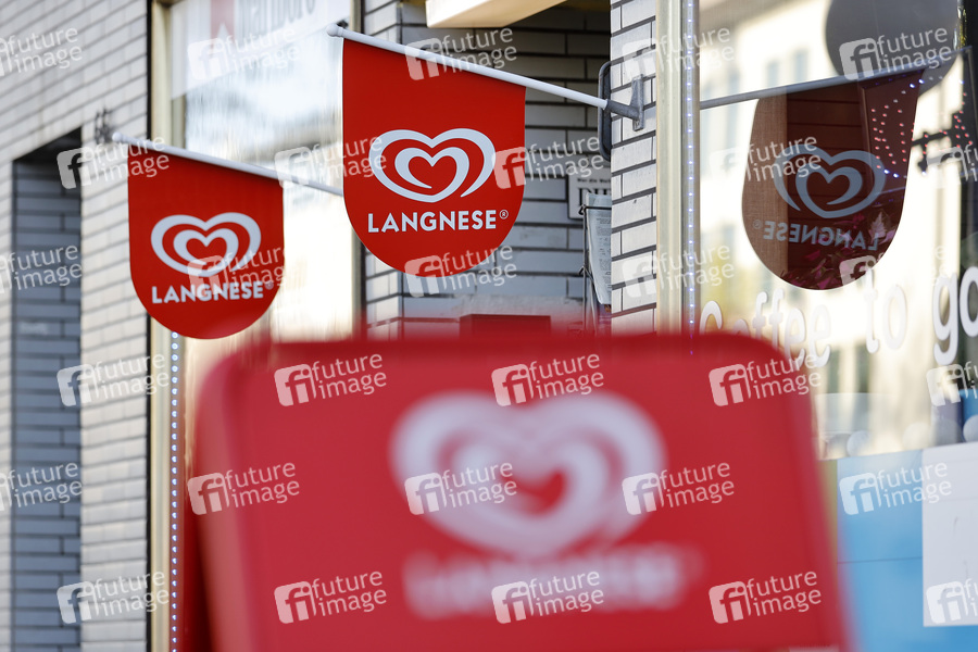 Fahnen des Eisherstellers Langnese an einem Kiosk in Bonn. (Themenbild, Symbolbild) Bonn, 03.10.2021