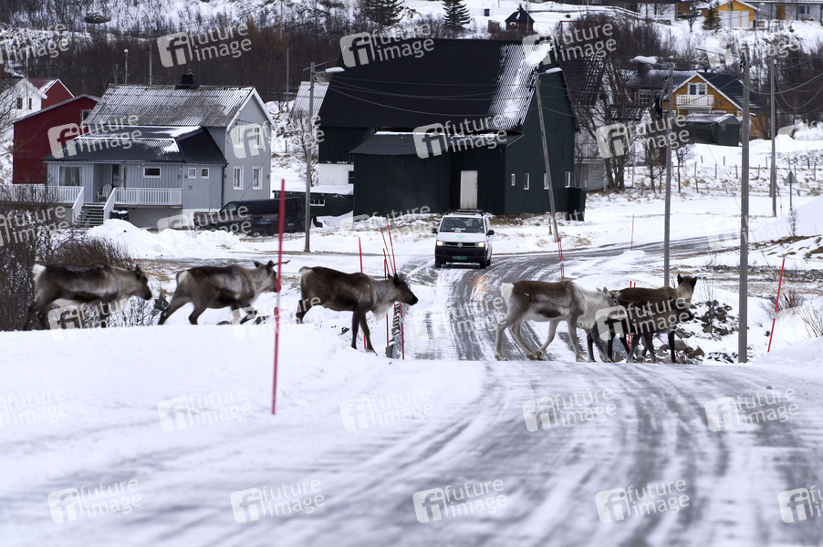 Sommarøy, Ren, Rentier, Renntier, Rangifer tarandus, Tier, Hirsch, Verkehrsgefährdung