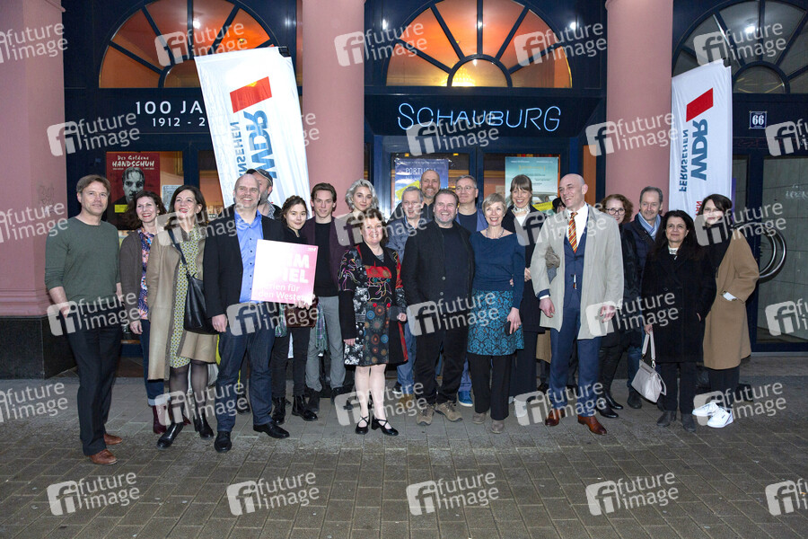 Götz Bolten, Katja Kittendorf, Gabriele Graf, lngmar Cario, Stefan Lampadius, Hannah Schiller,Alvar Julian Goetze, Antonia Lingemann, Dagmar Sachse, Klaus Knoesel, Markus Hoffmenn, Felix Vörtler, Thorsten Flassnöcker, Anna Stieblich, Anna Böger, Robert Dölle, Elke Kimmlinger, Ralf Mootz, Christina Voss-Michalke, und Katarina Cvitic bei der Präsentation des neuen Primetime-Sendeplatzes 'Heimspiel - Serien für den Westen' mit den Previews der TV-Serien 'Ohne Schnitzel geht es nicht', 'Phoenixsee' und 'Meuchelbeck' im Lichtspiel- und Kunsttheater Schauburg. Dortmund, 26.03.2019