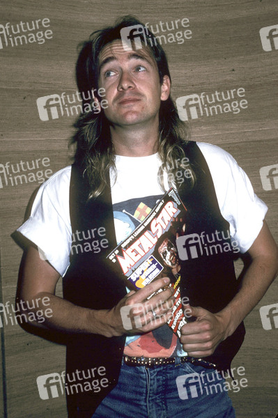 Adrian Smith von Iron Maiden bei einem Photoshooting bei seiner Plattenfirma. London, 02.08.1990