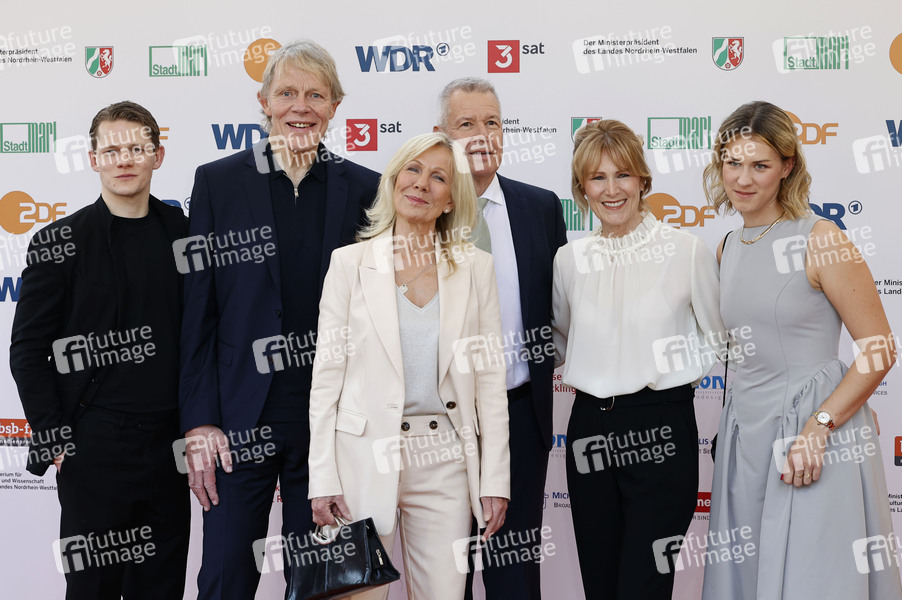 Max von der Groeben, Alexander von der Groeben, Ulrike von der Groeben, Peter Kloeppel, Carol Kloeppel und Geena Kloeppel bei der 61. Verleihung des Grimme Preises 2025 im Theater Marl. Marl, 04.04.2025