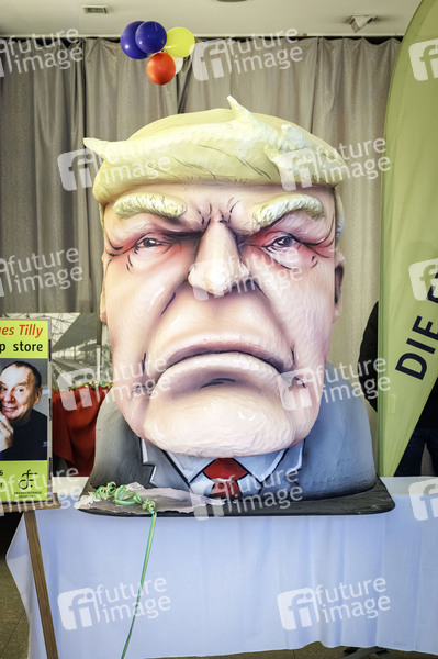 Politik, Politiker, Donald Trump, Trump, US-Präsident, Präsident der USA, Republikanische Parte, Wirtschaftlicher Stillstand, Baustelle, Baustellen, Ladenlokal, Pappmaché, Jacques Tilly, Olaf Huurdeman, Dietmar Wolf, Die Friedrichs, Rosenmontagswagen, Rosenmontag, Karneval, US President, President of the United States, Protest, König, Autokratie, Autokrat