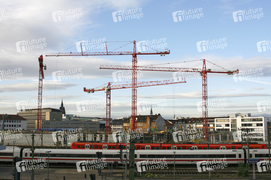 Bauzeit 2006-2008, Einkaufszentrum am Hauptbahnhof, Ernst-August-Platz, Kräne, Kran, Züge, ICE, Intercity Express, S-Bahn, Gleise, Bahnhof