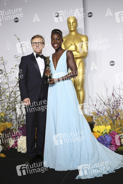Christoph Waltz und Lupita Nyong'o mit dem Oscar für die beste Nebendrstellerin in '12 Years a Slave' bei der Oscar Verleihung 2014 / 86th Academy Awards Preisverleihung im Dolby Theatre, Hollywood. Los Angeles, 02.03.2014