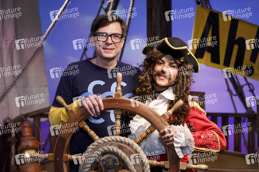 Ralph Caspers und Clarissa Correa da Silva beim Fototermin zu 18 Jahre KiKA Wissensmagazin 'Wissen macht Ah!' in den WDR Studios Bocklemünd. Köln, 25.03.2019