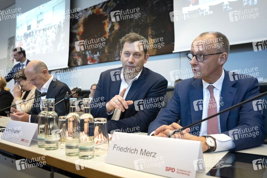 Saskia Esken, Olaf Scholz, Lars Klingbeil, Friedrich Merz