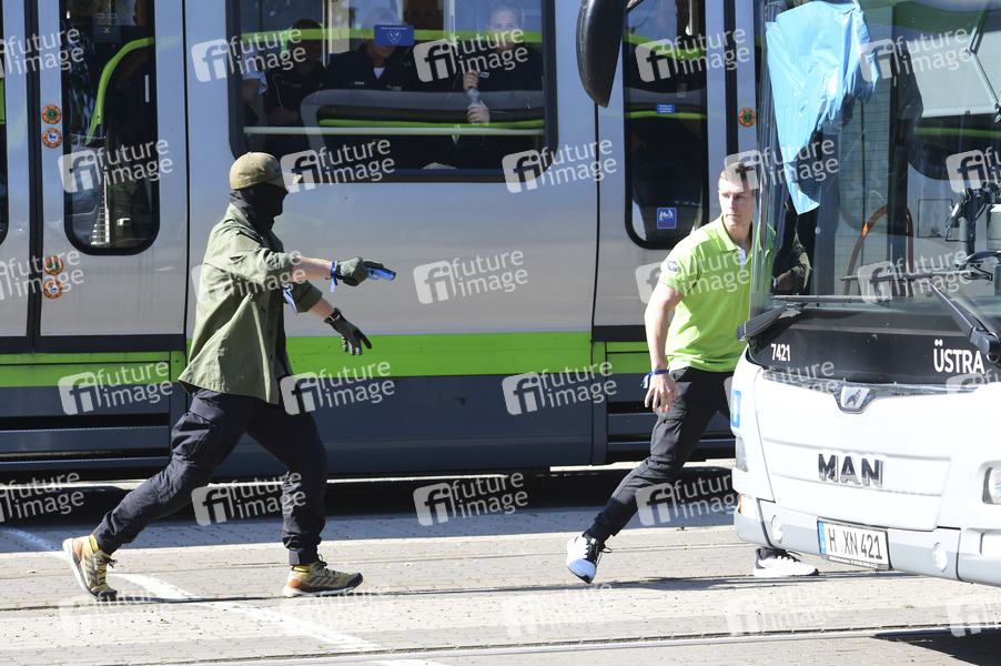 Großübung Terroranschlag: Hannover probt den Ernstfall einer Geiselnahme in einem Bus auf dem Üstra-Betriebshof Glocksee. Hnnover, 21.09.2024