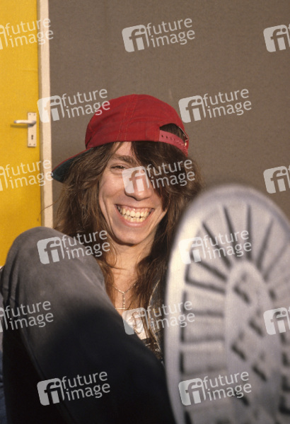 Scotti Hill von Skid Row bei einem Photoshooting im Milton Keynes Bowl. Milton Keynes, 18.08.1989
