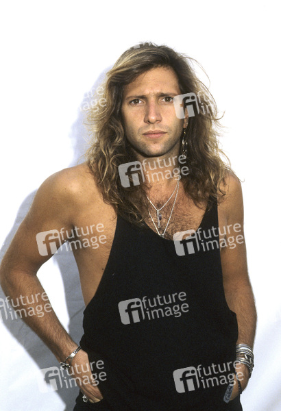 Rob Affuso von Skid Row bei einem Photoshooting im Milton Keynes Bowl. Milton Keynes, 18.08.1989