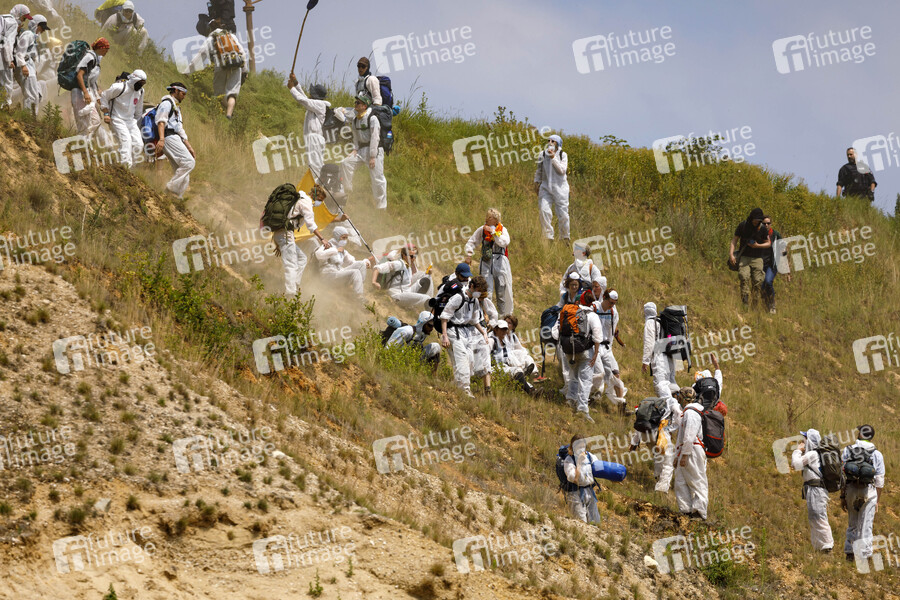 Teilnehmer des Bündnis Ende Gelände sowie Demonstranten von Fridays for Future stürmen den Tagebau Garzweiler bei Köln. Hochneukirch, 22.06.2019