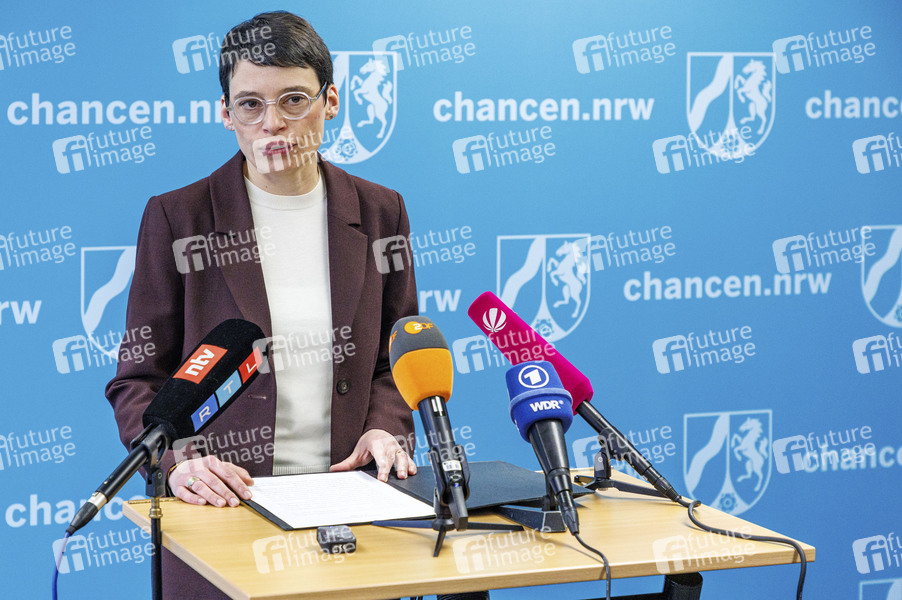 Josefine Paul gibt ihren Rücktritt vom Amt der Ministerin für Kinder, Jugend, Familie, Gleichstellung, Flucht und Integration des Landes Nordrhein-Westfalen im Kabinett Wüst II bekannt. Düsseldorf, 27.01.2026