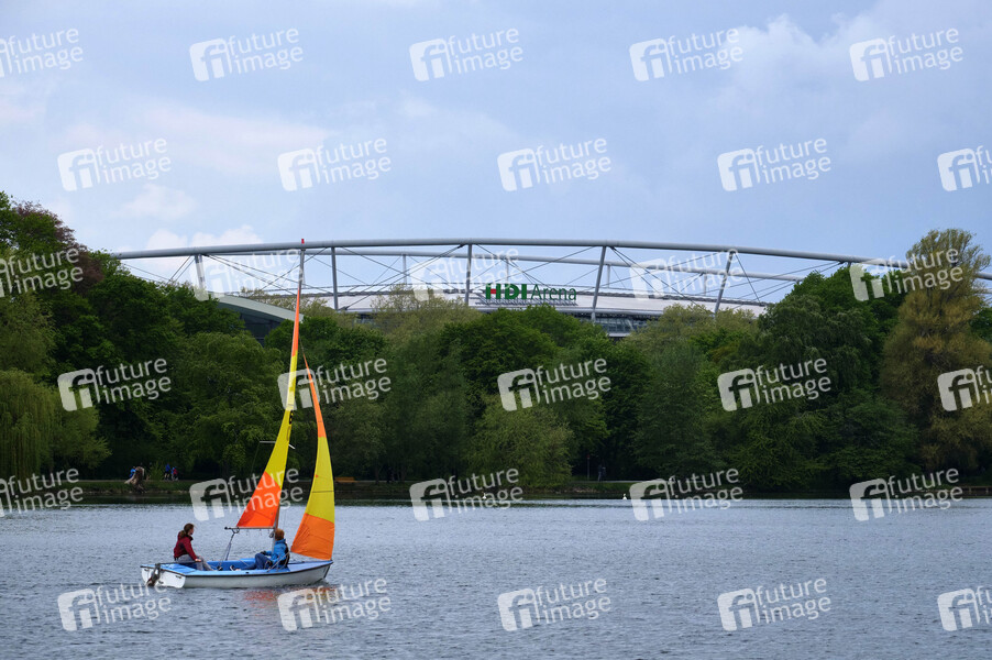 Niedersachsenstadion, Fußballstadion, See, Gewässer, künstlich angelegter 2.4 km langer und 180 bis 530 m breiter See südlich des Stadtzentrums von Hannover, 78 Hektar, Naherholungsgebiet, Wassersport, Segelboot