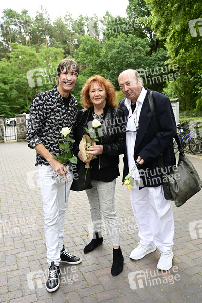 Rainer Genss, Regina Thoss und Gast bei der Trauerfeier für Urte Blankenstein in der Kapelle des Waldfriedhofs Oberschöneweide. Berlin, 19.06.2025