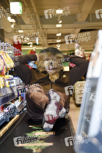 Prominenz, Entertainment, Celebrities, Celebrity, Launch, Kaufland, Wookie, Chewbacca, Star Wars, Maske, Kasse, Alexanderplatz, Kampagnenfilm, Reality-TV-Darsteller