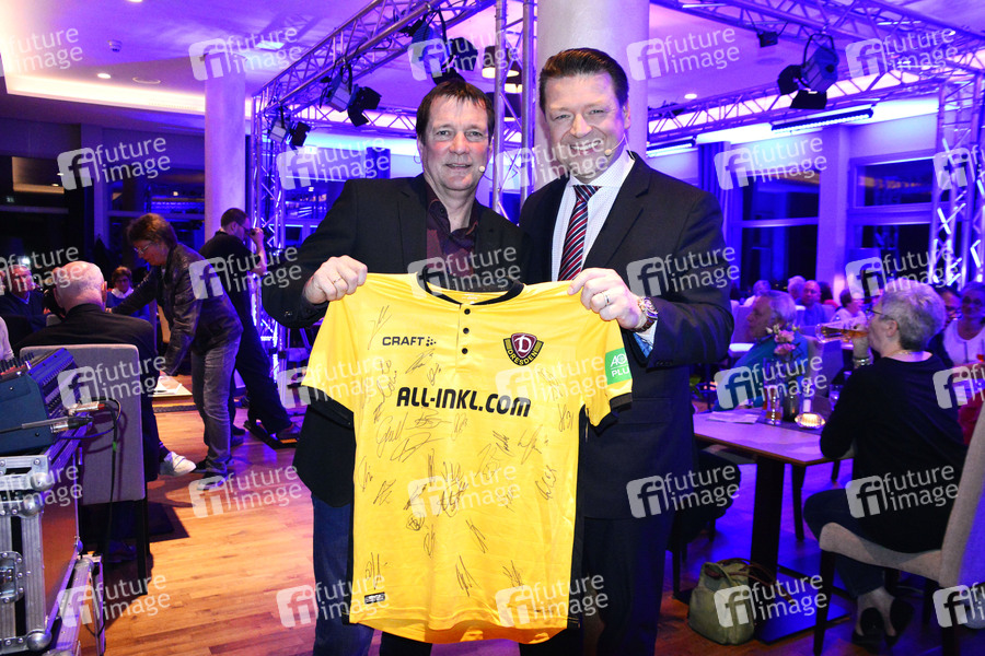 Torsten Gütschow und Holger Scholze bei der Aufzeichnung der MyTVplus Talkshow 'Balkongespräche' im Luisenhof. Dresden, 03.04.2019
