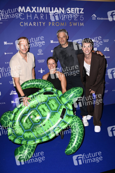Thomas Lurz, Kirsten Bruhn, Gerd Schönfelder und Maximilian Seitz beim Charity Promi Swim Event 2025 von Maximilian Seitz zugunsten von 'Kindeswohl-Berlin' im Hotel Pullman Berlin Schweizerhof. Berlin, 24.07.2025