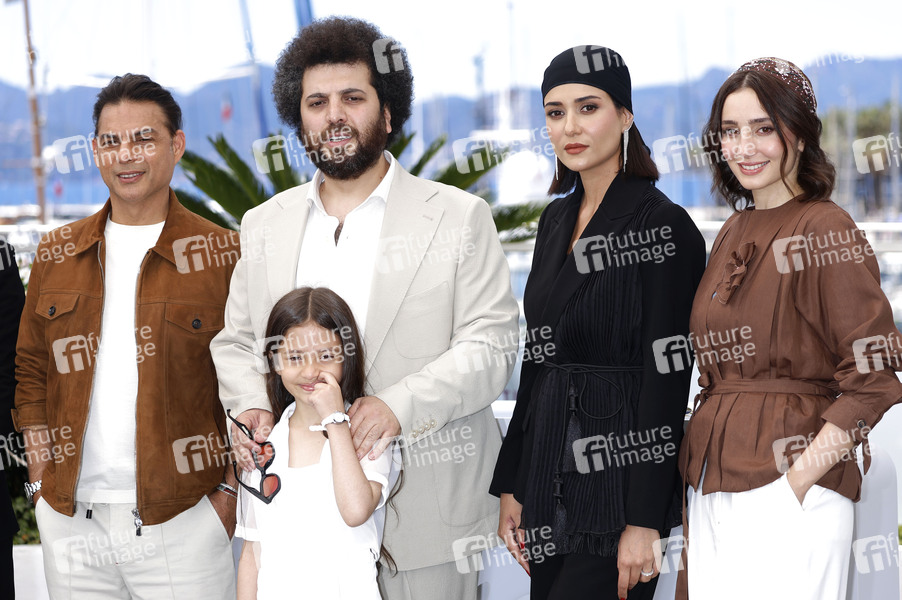 Payman Maadi, Saeed Roustaee, Arshida Dorostkar, Parinaz Izadyar und Soha Niasti beim Photocall zum Kinofilm 'Zan va bache / Woman and Child' auf dem Festival de Cannes 2025 / 78. Internationale Filmfestspiele von Cannes am Palais des Festivals. Cannes, 23.05.2025