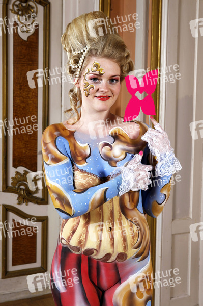 Barock Bodypainting mit Model Daniela im Schloss Hasperde. Hasperde, 25.02.2014 - Body Paint Künstler: Jörg Düsterwald, Frisur und Make-up: Janina Horstmann