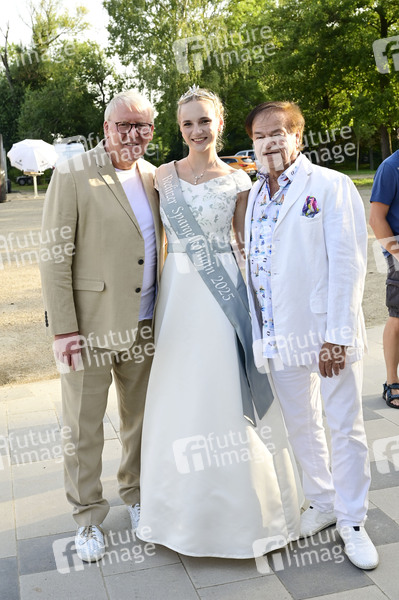 Bernhard Knuth, Maxi Hiemann und Wilfried Peetz bei der Premiere des Theaterstücks 'Maxe Baumann - Ferien ohne Ende' während der Beelitzer Festspiele 2025 auf der Freilichtbühne. Beelitz, 14.08.2025