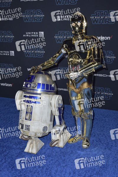 R2-D2 und C-3PO bei der Weltpremiere des Kinofilms 'Star Wars: Episode IX - The Rise of Skywalker / Star Wars: Episode IX - Der Aufstieg Skywalkers' zeitgleich im TCL Chinese Theatre, im El Capitan Theatre und im Dolby Theatre. Los Angeles, 16.12.2019
