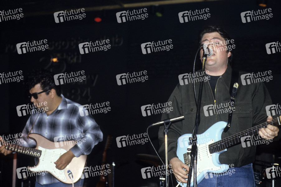 Cesar Rosas und David Hidalgo von Los Lobos bei einem Presse-Showcase im Ronnie Scott's. London, 27.03.1985