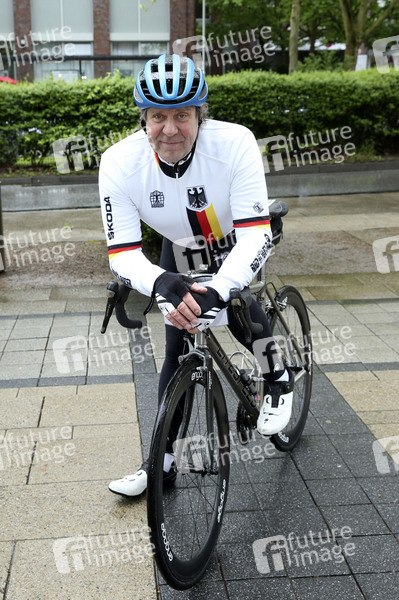 Uwe Rohde beim Start der HerzRadtour zugunsten der Stiftung KinderHerz vor dem Alstertal-Einkaufszentrum. Hamburg, 26.05.2021