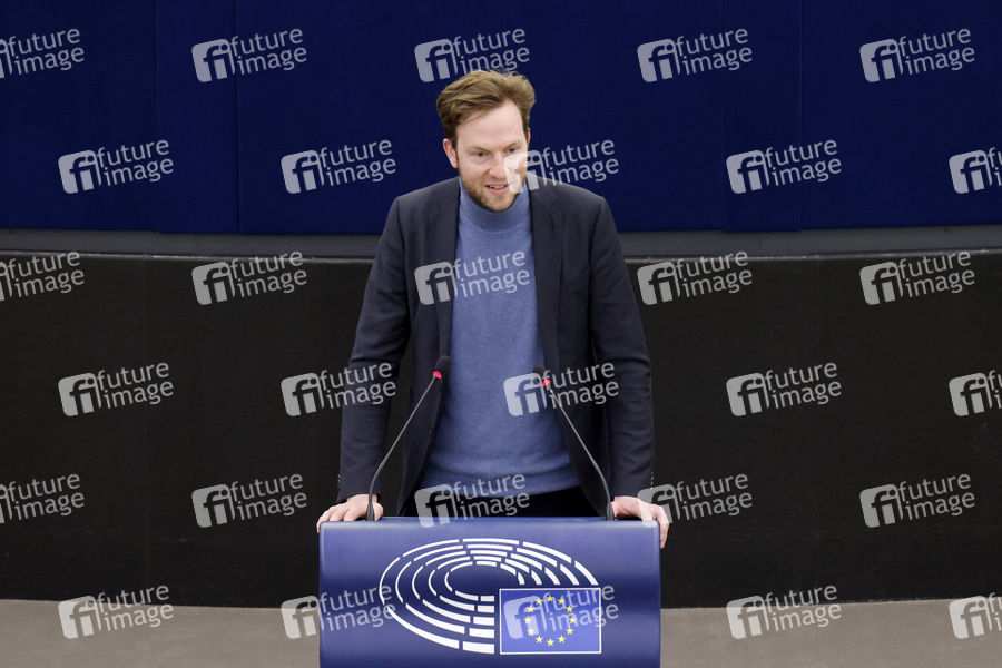 Damian Boeselager im Plenarsaal des Europäischen Parlaments. Straßburg, 07.03.2022