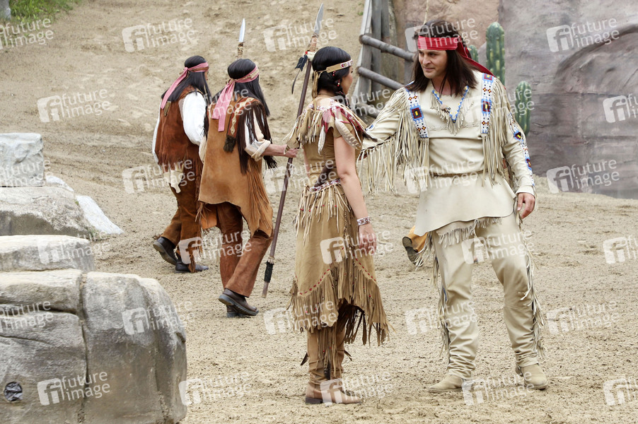 Sila Sahin und Alexander Klaws beim Pressetermin mit Ausschnitten aus dem Stück'Winnetou II - Ribanna und Old Firehand' der 71. Karl-May-Spiele 2024 im Freilichttheater am Kalkberg. Bad Segeberg, 21.06.2024