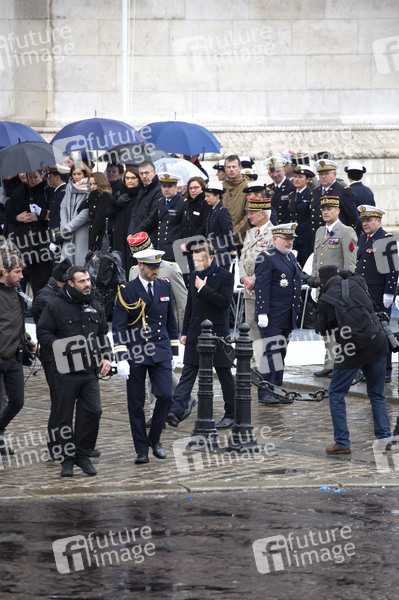 Politiker, Staatspräsident von Frankreich, La République en Marche, cérémonies du 101ème anniversaire de l’Armistice de 1918, Politik, Euroapolitik, Weltpolitik, Zeremonie, Feierlichkeiten, Feierlichkeit, Staatengemeinschaft, Internationale Organisationen, Verbündete, Militär, Soldaten