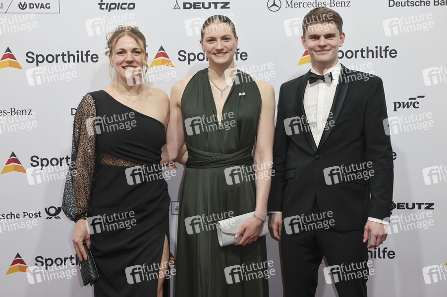 Undine Lauerwald, Nina Holt und Justus Mörstedt beim 55. Ball des Sports 2026 der Stiftung Deutsche Sporthilfe in der Festhalle Frankfurt. Frankfurt am Main, 21.02.2026