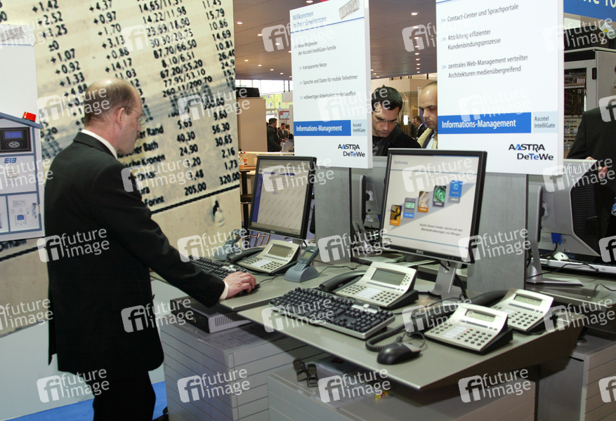 CeBIT 2006 (Centrum der Büro- und Informationstechnik) auf dem Messegelände in Hannover. Die weltgrößte Computer- und ITK-Messe (Informationstechnik und Telekommunikation) / The wolrd's largest ICT fair (Information and Communication Technology)