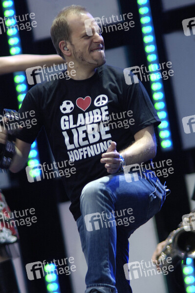 Lotto King Karl auf dem Live Earth Konzert in der Hamburger HSH-Norbank-Arena. Die weltumspannende Konzertreihe fand auf sieben Kontinenten insgesamt 24 Stunden lang statt. Ins Leben gerufen vom ehemaligen US-Vizepräsidenten und Umweltaktivisten Al Gore und vom Musikproduzenten Kevin Wall, die damit auf die Klimaerwärmung aufmerksam machen wollten.