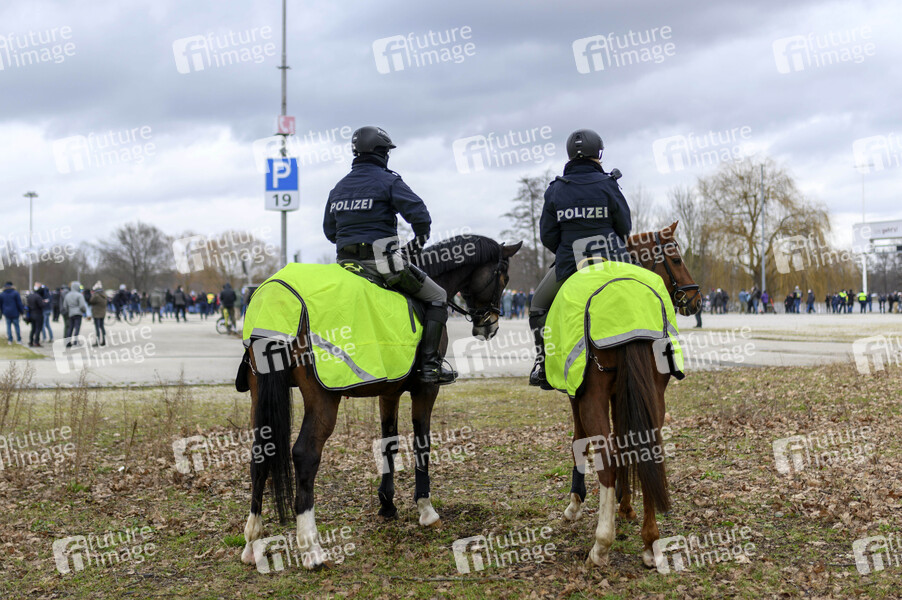 Megademo, Reiterstaffel, Pferd, Pferde, Polizisten, berittende Polizei Bayern Polizeieinsatz, Bereitschaftspolizei, Einsatzhundertschaft, Einsatzbelastung, Überstunden, 2G-Regel, Bewegung, Corona, Coronademo, Corona-Demo, Corona-Demonstranten, Corona-Kontrolle, Corona-Kontrollen, Coronakrise, Coronamaßnahmen, Corona-Maßnahmen, Corona-Politik, Coronaproteste, Corona-Proteste, Corona-Regeln, Coronaskeptiker, Corona-Skeptiker, Corona-Leugner, Coronaleugner, Coronavirus, Demo, Demonstration, Gesellschaft, Grundrechte, Impfen, Impfgegner, Impfpflicht, Impfung, Impfzwang, Infektionsschutzgesetz, Innenpolitik, Maskenpflicht, Mindestabstand, Politik, Querdenken, Querdenker, Versammlungsrecht, Virus, Verschwörungstheoretiker