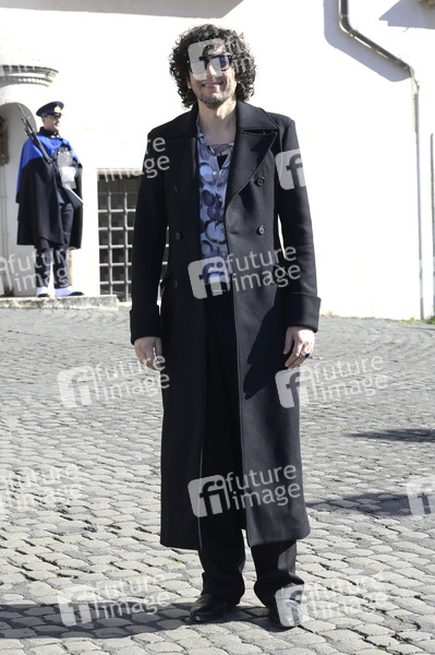 Ermal Meta bei der Ankunft der Teilnehmer vom Festival di Sanremo 2026 zum Empfang beim italienischen Präsidenten auf der Piazza del Quirinale. Rom, 13.02.2026