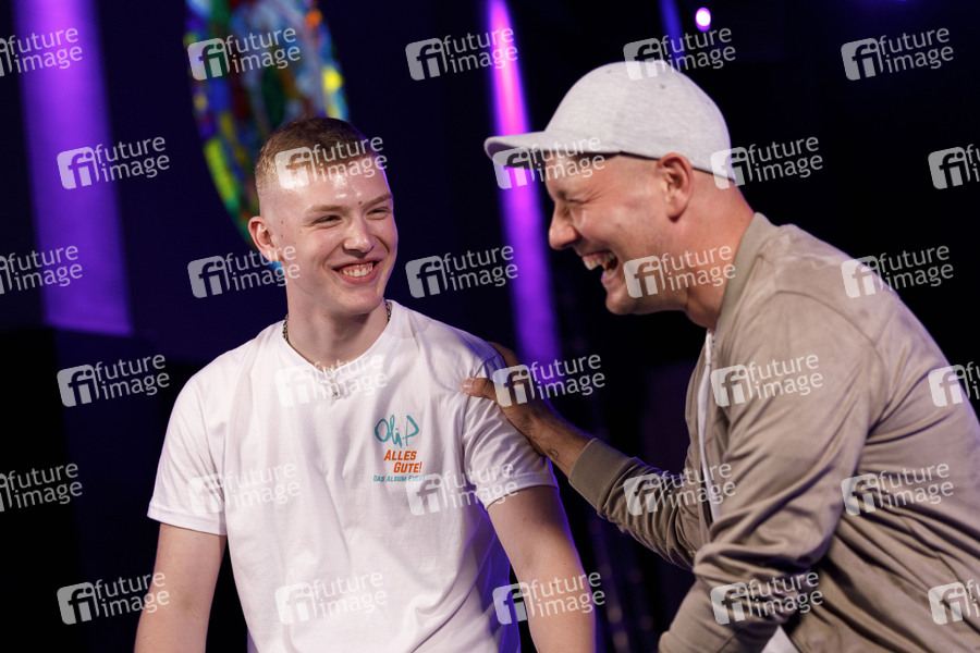 Ilias Petszokat mit Vater Oli.P / Oliver Petszokat bei der Präsentation des Albums 'Alles Gute!' im Carlswerk Victoria. Köln, 11.08.2019
