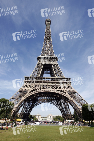 Wahrzeichen von Paris, erbaut zwischen 1887 und 1889 von der Gustave Eiffel & Cie, für die Weltausstellung anlässlich des hundertjährigen Jubiläums der Französischen Revolution erbaut, 300 Meter hoch, über 10.000 Tonnen schwer, für die Öffentlichkeit zugängliche Plattformen befinden sich auf 57 und 115 sowie 276 Meter Höhe
