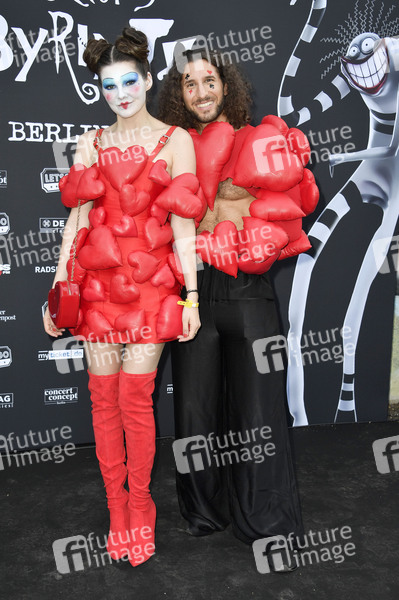 Klaudia Giez und Adriano Salvaggio bei der Premiere der internationalen Ausstellung 'Tim Burton's Labyrinth' in der Radsetzerei auf dem RAW-Gelände. Berlin, 18.07.2024