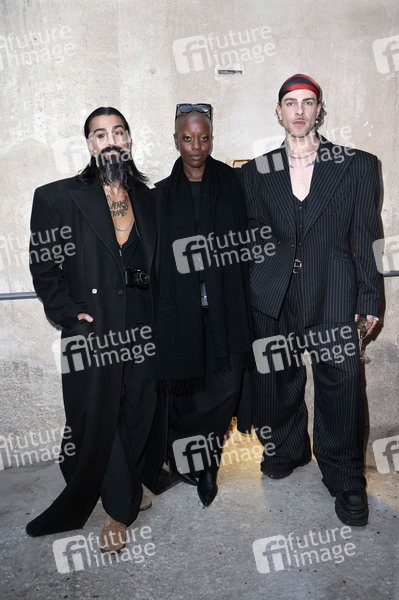 Puria Safary, Florence Kasumba und Alexander Michael Arnold bei der Ausstellungseröffnung 'Wer bist du in einem Raum, in dem du jeder sein kannst?' von Puria Safary & A.M.A. im Bunker West. Berlin, 03.10.2025
